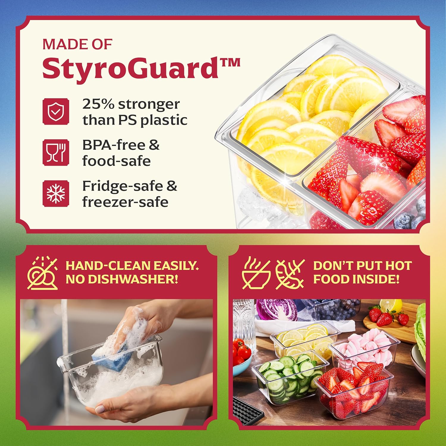 Perfect for mimosa bars, taco bars, salad stations, BBQs, picnics, brunches, and everyday fridge organization.